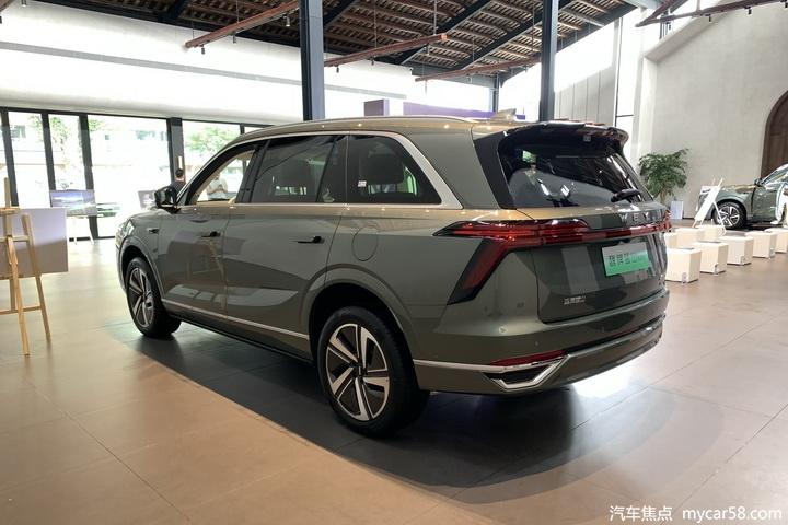 車身側面造型簡約流暢,車窗周圍有一圈鍍鉻裝飾條進行點綴,寬大的車身與隱藏式門把手并沒有出現違和感,呈現出一種低調的奢華感。尺寸方面,新車長寬高分別為5156/1980/1805mm,軸距為3050mm,定位中大型SUV。