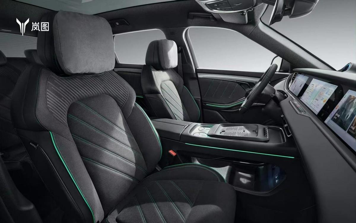 進(jìn)到車(chē)內(nèi),嵐圖FREE 318的設(shè)計(jì)也同樣亮眼,推出了兩款內(nèi)飾主題搭配。其中青峰黑配色以黑色為主調(diào),搭配綠色縫線;而幻影灰則采用灰色和淺灰的搭配,讓整個(gè)視覺(jué)層次更加豐富。