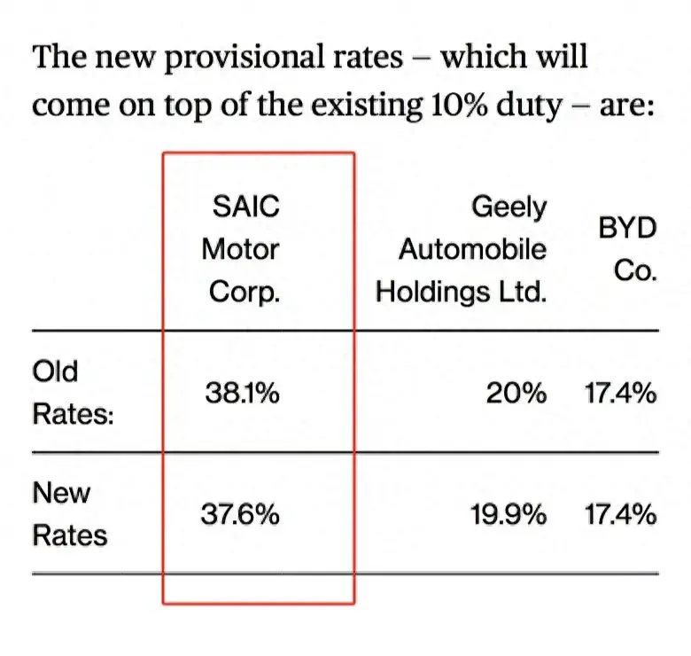 據(jù)6月26日彭博社報(bào)道,歐盟將微調(diào)針對中國電動車的臨時(shí)反補(bǔ)貼稅。上汽關(guān)稅從38.1%降到37.6%,吉利則從20%降到19.9%。比亞迪17.4%的稅率則維持不變。