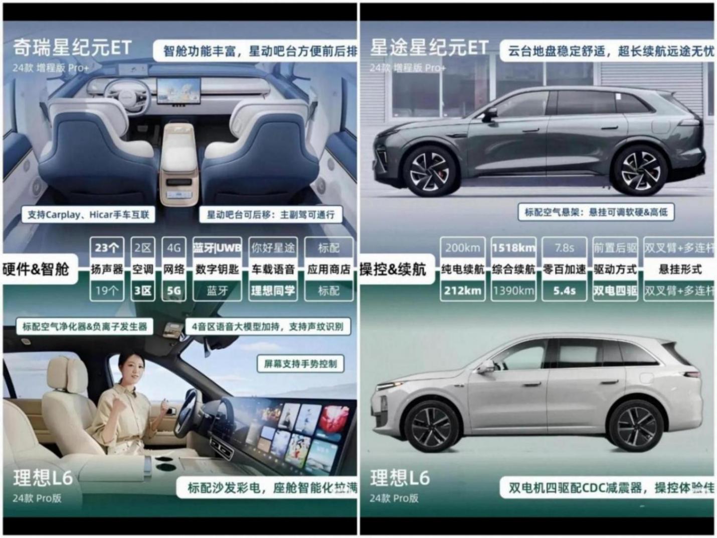 理想L6網(wǎng)上口碑有爭(zhēng)議,但銷量卻一路飄紅,讓不少車企眼紅。奇瑞推出的星紀(jì)元ET,就想和它掰掰手腕。咱今天就來對(duì)比一下這兩款車的熱門車型——理想L6 Pro版和星紀(jì)元ET四驅(qū)Max版。