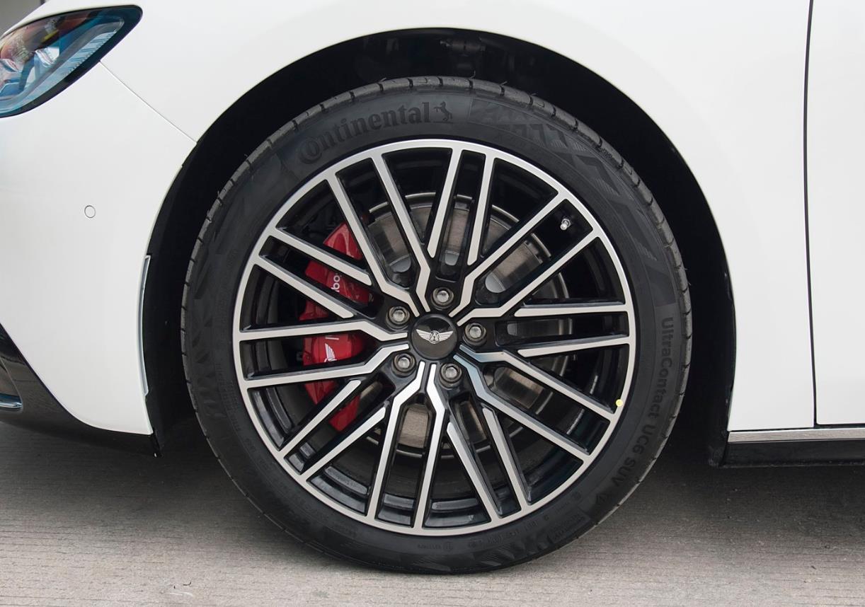 而這款車的側面,也沒有多余的線條和凹凸,整體就是一種順滑的感覺,而且輪轂尺寸也很大,配上隱藏式門把手和無框車門設計,看上去很持重。尾部設計則非常簡潔,貫穿式尾燈造型也沒有特別多值得一說的,但是整體看起來,還是符合這個尺寸段位該有的穩重感。