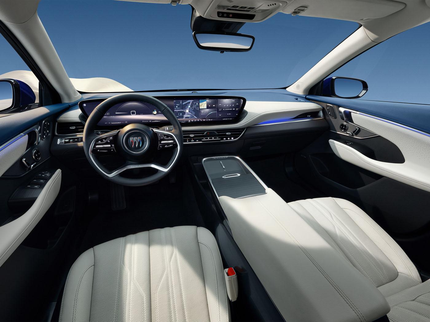 內飾這一塊,新款君越堪稱豪華了,這款車搭載了30英寸的“帶魚屏”,集成了全液晶儀表和中控大屏,并且采用了倒梯形設計,看起來還是很有科技感的。同時這款車還搭載了電子懷擋,原先的擋把位置,變成了手機無線充電板和杯架,并且用到了“半島”式設計,整體的內飾設計,相比于之前的君越,可以說提升了好幾個檔次。