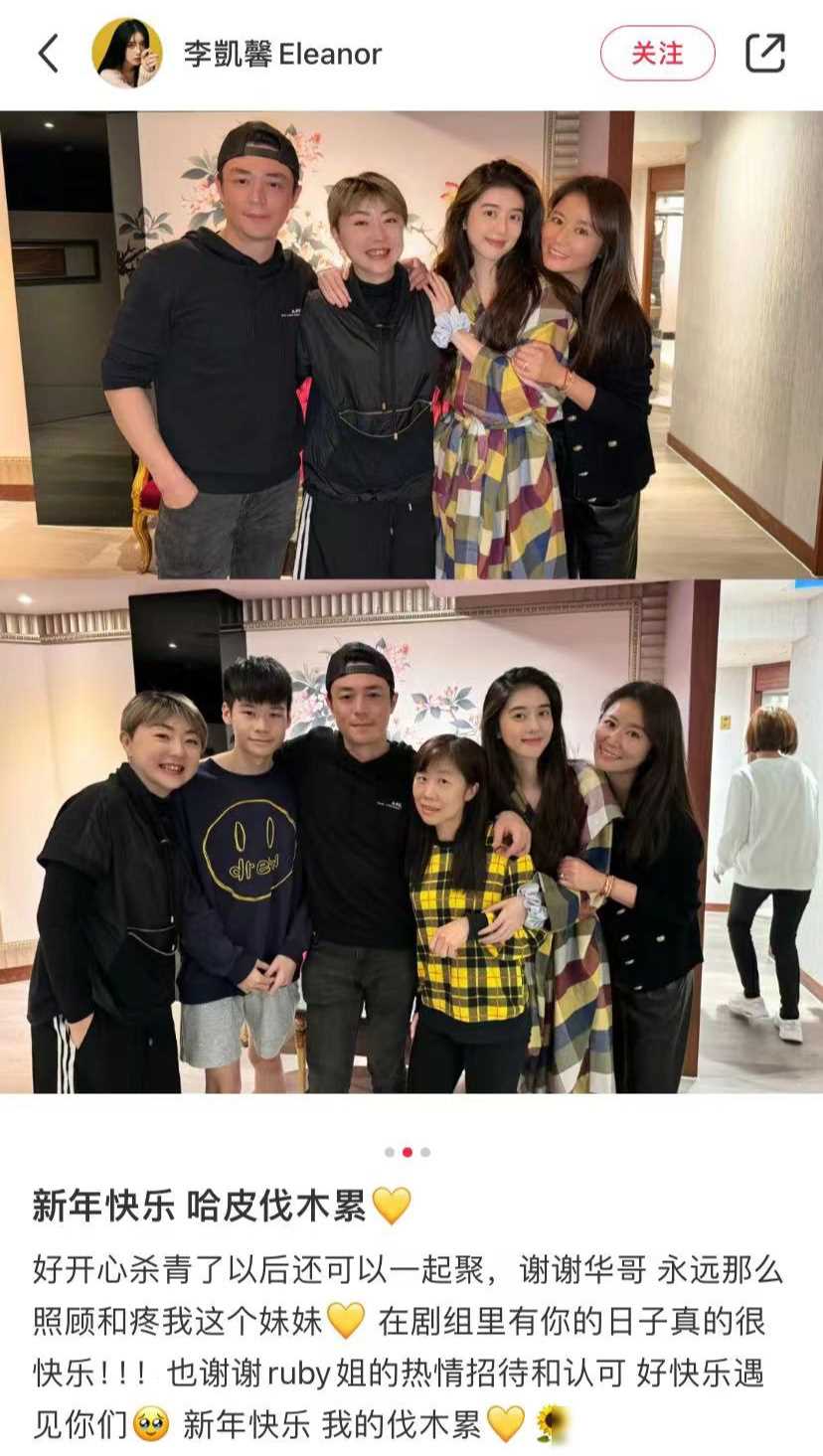 他們倆的頭幾乎貼在了一起,霍建華的一只手搭在了李凱馨的肩膀上,雖然他將手握成了拳頭,但這仍然引發了許多討論。李凱馨的配文更加耐人尋味:“好開心殺青了,以后還可以一起聚。謝謝華哥永遠那么照顧和疼我這個妹妹,在劇組里有你的日子真的很快樂。”