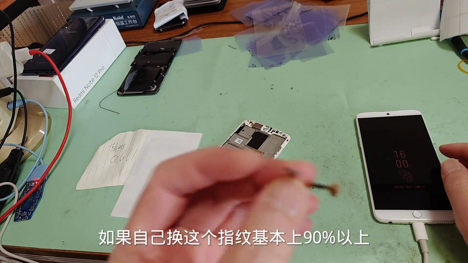 之前有很多同行自己換指紋也是不小心把這個通到排線上面,這個是液晶的排線,一頂它就壞掉了。這個是剛剛順豐發過來客戶急用,現在收到馬上已經換好了,來測一下手機的功能。