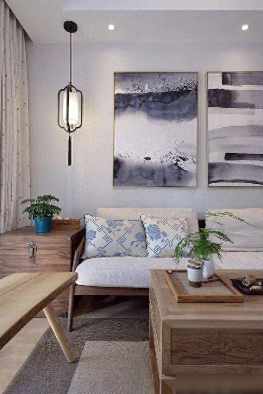 這套96㎡原木三居新房的客廳設計注重舒適度和實用性,采用了 自然溫馨的色調和簡約的家具裝飾,營造出一種輕松愉悅的氛圍,在整個空間中,設計師運用了水墨畫和中式風格的吊燈等,營造出了一種溫馨和諧的氛圍, 同時還注重了舒適度的提升,采用了軟包沙發和舒適的地毯,讓居住者在其中感受到無盡的溫暖和舒適。