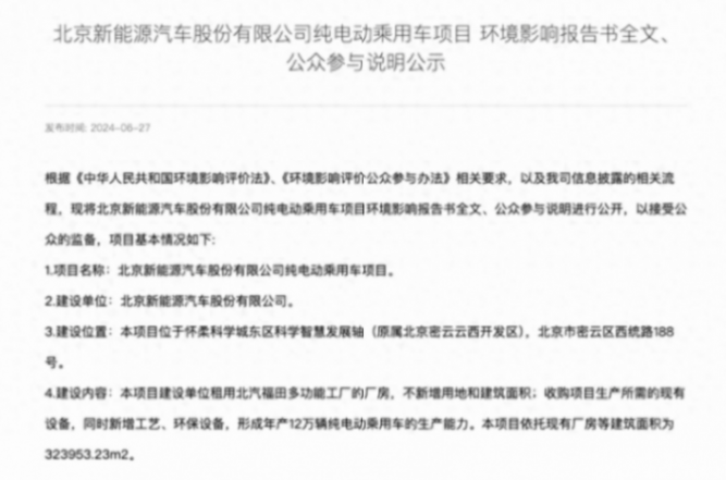 近日透露的環境影響報告書中,北京新能源汽車股份有限公司向公眾展示了其純電動乘用車項目“享界”的詳細規劃。該品牌計劃推出的三款車型涵蓋了高端商務轎車、豪華旅行車以及B+級SUV市場。