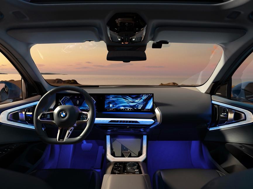 另外就是全新的設計風格,相似的設計語言放在5系身上似乎還受到不少詬病,但用在一款SUV上則是非常的和諧,新車擁有更加簡約的車身線條以及更大的雙腎式格柵,讓全新X3看上去同樣是更“新能源化”了。內飾同樣是吸收了自家iX的設計風格,盡管沒有像當今新勢力一樣的冰箱沙發大彩電,但橫向連屏+氛圍燈的搭配還是非常有科技感的。