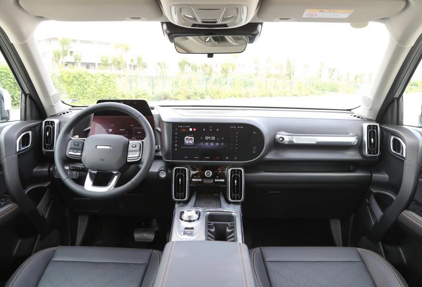 前臉復(fù)古圓形大燈搭配粗壯橫幅式進氣格柵,視覺沖擊力十足,還透著一股復(fù)古韻味。車身側(cè)面的獨特標(biāo)識與實用的車頂行李架,不僅凸顯越野屬性,更為熱衷戶外出行的消費者提供便利。車尾寬大厚實,貫穿式尾燈從兩側(cè)向下延伸,有著較高的辨識度,底部隱藏式雙邊單出排氣布局,讓整車精致感倍增。然而,方正的車身導(dǎo)致風(fēng)阻系數(shù)偏高,高速行駛時油耗增加,風(fēng)噪較大,車速超一定速度時,風(fēng)噪會干擾車內(nèi)交流。而且車身寬大,在停車位緊張或狹窄的停車場,停車難度加大,新手操作時需格外小心,以防刮蹭。