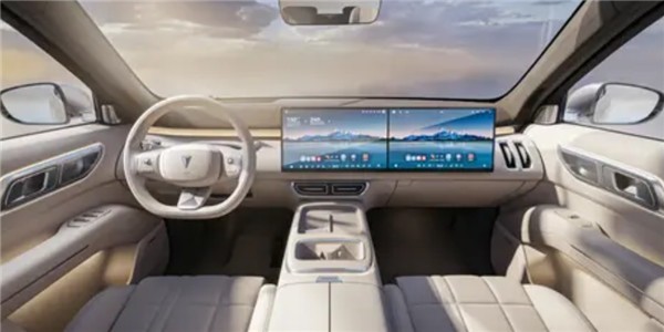 深藍(lán) S09 的車內(nèi)整體采用淺色搭配,營造出明亮、寬敞的空間感。車內(nèi)配備了雙 15.6 英寸懸浮式中控屏,不僅擁有 2.5K 分辨率和 1000 尼特的高亮度,能帶來清晰絢麗的視覺體驗(yàn),兩塊屏幕還采用連體布局,科技感十足。副駕屏的加入,讓副駕乘客也能享受專屬的娛樂與便捷功能。與此同時(shí),43 英寸 AR-HUD 抬頭顯示系統(tǒng),將關(guān)鍵行車信息直接投射在前擋風(fēng)玻璃上,讓駕駛者無需低頭就能獲取信息,提升了駕駛的安全性與便利性。