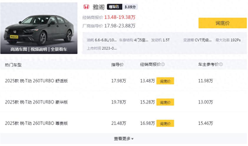 以前的B級(jí)車領(lǐng)軍者雅閣,其終端售價(jià)有了大幅的下降,降到了約15萬左右。甚至有人調(diào)侃說:“比國產(chǎn)車子還便宜!”