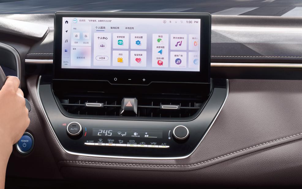 內(nèi)飾方面,新車內(nèi)飾裝修風(fēng)格延續(xù)了老款設(shè)計,并主要對配置進行升級。其中,1.8L第五代智能電混雙擎精英版內(nèi)飾采用大量軟性皮質(zhì)包覆,包括座椅、中央扶手,以及方向盤等處質(zhì)感得到進一步提升。此外,新車搭載了12.3英寸全液晶儀表盤+10.25英寸中控屏幕,并支持多媒體智能導(dǎo)航系統(tǒng)、CarPlay、CarLife、HiCar三大平臺,可與智能手機互聯(lián)。支持車載微信、語音AI交互、OTA無線升級、高精地圖等等豐富配置。