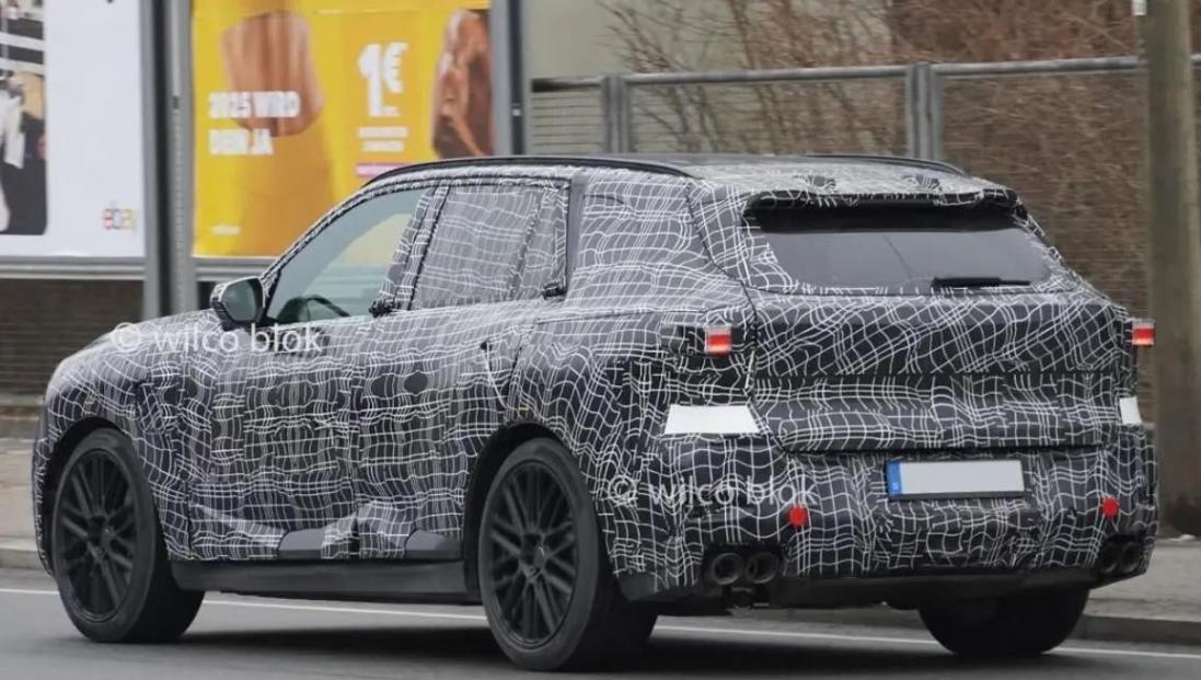 車尾方面,全新X5 M60e xDrive采用了雙邊雙出的排氣布局,強調了其高性能車型的定位。此外,車尾擾流板、全新樣式的運動型輪轂等元素也增強了整車的運動感,而尾燈部分目前仍為測試燈組,最終量產版預計會采用寶馬最新的家族式燈組設計。