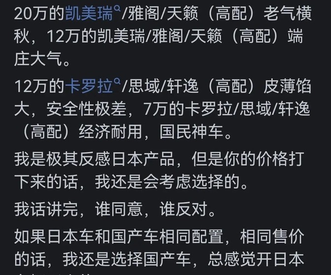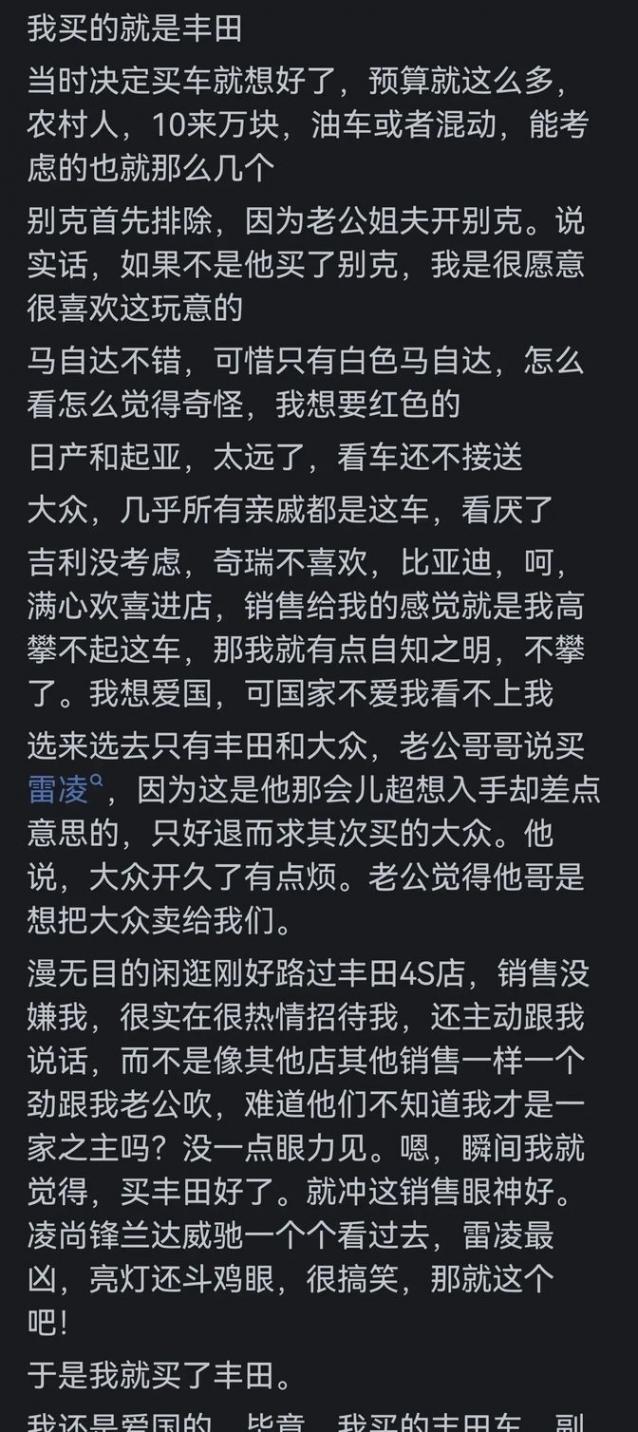 那么,現在買豐田車到底值不值?其實,這個問題沒有絕對的答案。選擇買什么車,最終還是要看個人的需求和預算。如果你追求穩定性和低用車成本,豐田依然是一個不錯的選擇。如果你更看重性價比和高科技配置,那么國產車可能更適合你。說到底,買車是一件很主觀的事情,沒有誰對誰錯,也不能輕易用“人傻錢多”來評價別人。