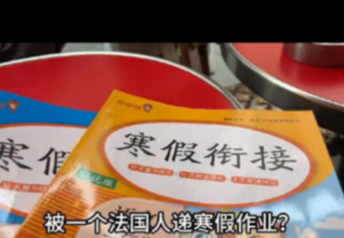 突然背后餐廳的服務員走了出來,上去就遞過來了兩本寒假作業,看到這一幕,這名視頻博主也是一頭霧水,難不成惡補寒假作業的風,都吹到了法國巴黎嗎?