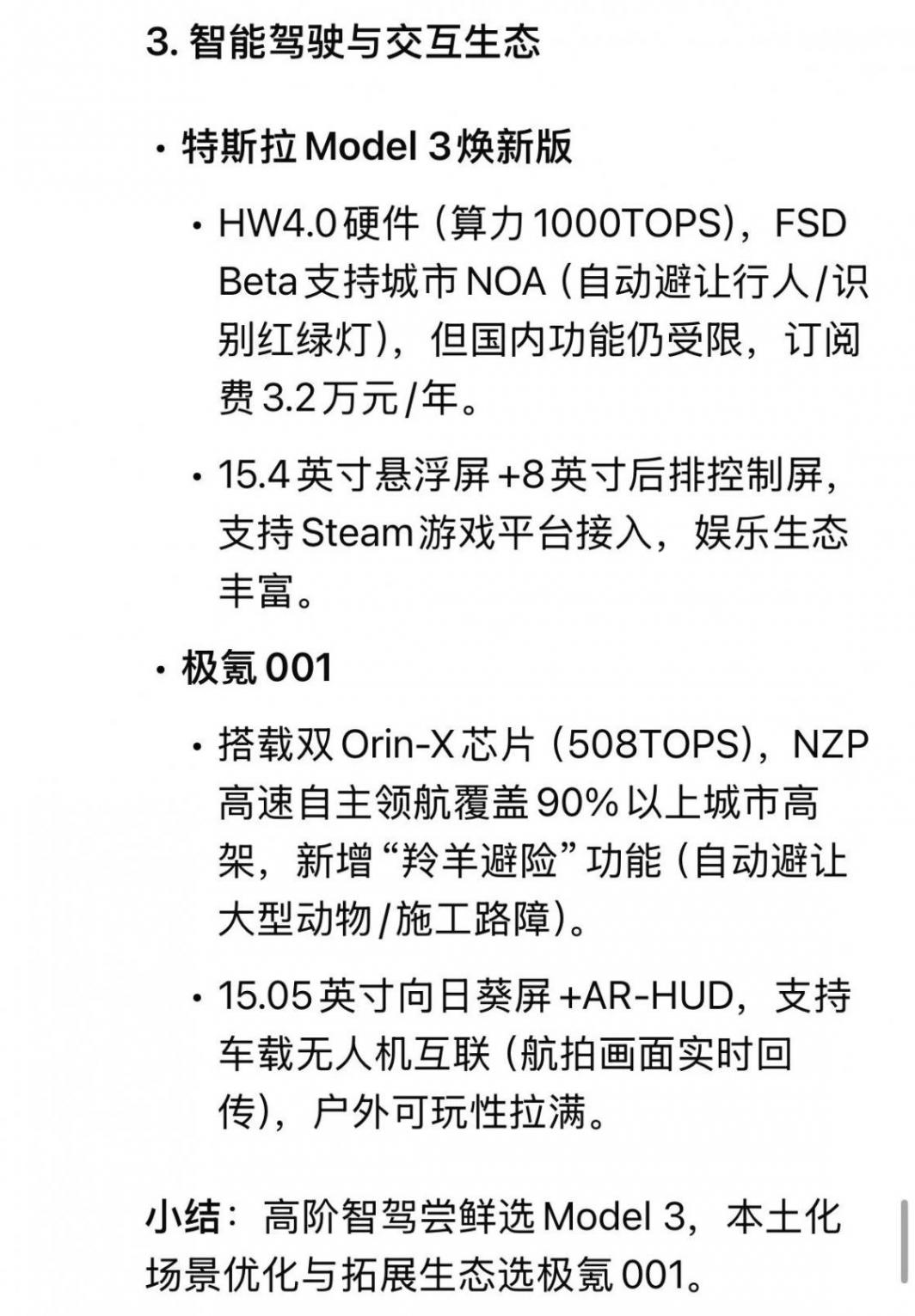純電轎跑市場持續(xù)升溫,特斯拉Model 3煥新版與極氪001憑借設計、性能與智能化的差異化優(yōu)勢,成為消費者熱議焦點。本文從設計語言、三電技術、智能體驗及場景適配四大維度展開硬核對決,助您精準匹配需求: