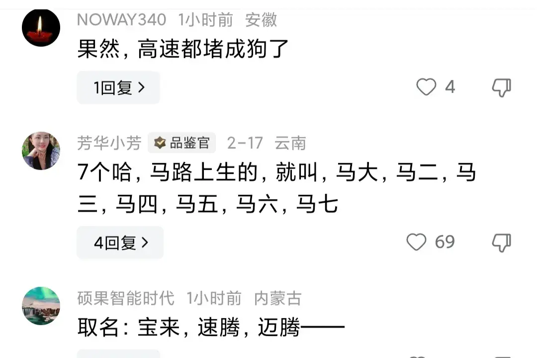 大家看到這條消息后都覺得很開心,紛紛調侃這家主人升級了,大年初八就有了狗外孫,還是屬龍的,讓他們趕緊給壓歲錢;也有人調侃說這家主人要在高速上給狗子照顧月子了。