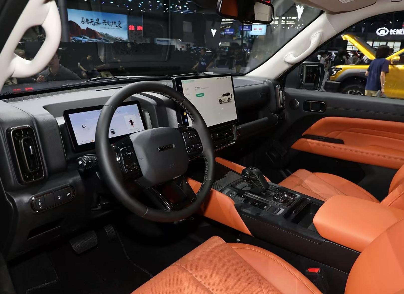 拉開車門,翻毛皮與航空鋁的混搭設(shè)計顛覆傳統(tǒng)認(rèn)知,三屏聯(lián)動座艙暗藏黑科技:12.3英寸全液晶儀表可顯示氣壓、海拔、車身傾角等越野參數(shù);14.6英寸中控屏搭載長城咖啡OS 2.0系統(tǒng),支持越野路書AI生成 ;HUD抬頭顯示將導(dǎo)航箭頭直接投射至實景路面 ;中央扶手箱可秒變5℃冷藏箱或50℃保溫箱,無線充電板支持三設(shè)備同時快充。