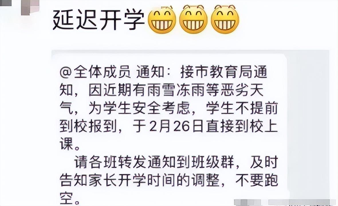 但受寒潮影響,雨雪天氣加上大幅度的降溫,學生們的出行,也是個不小的問題,出于安全考慮,武漢多所中小學緊急通知,延遲返校時間,原定2月21日開學返校,延遲到2月26日,雖然延遲時間并不多,但學生的心里卻樂開了花。