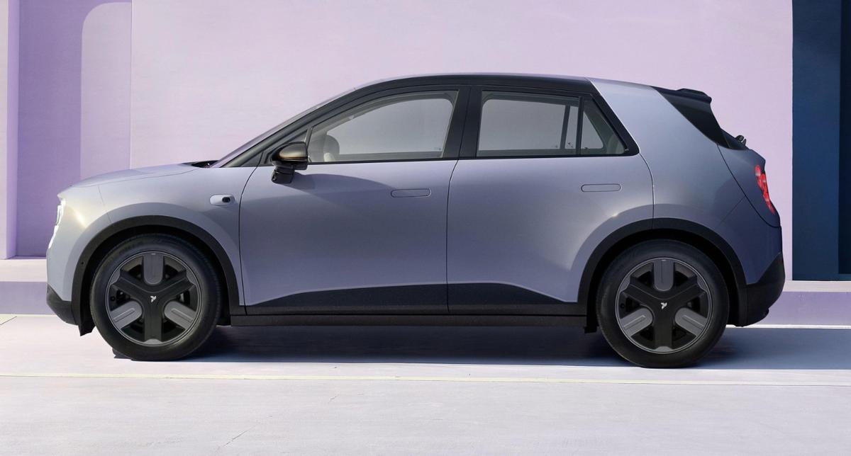 車身側面采用雙拼色設計和外凸式輪轂線條,營造出運動感,短前后懸搭配大尺寸輪轂,進一步強化了這種運動姿態,隱藏式門把手提升了整車科技感和空氣動力學表現。