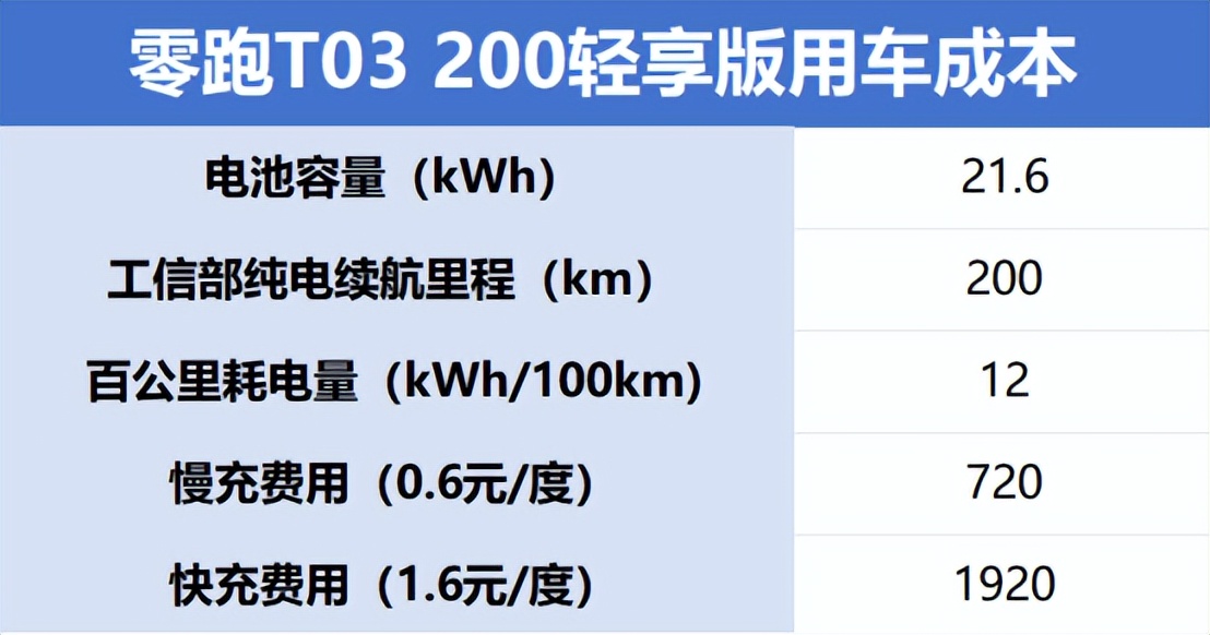 零跑T03 200輕享版的百公里電耗為12kWh,普通家庭用戶一年用車?yán)锍虨?萬公里左右,選擇慢充一年費(fèi)用為720元,快充則為1920元。相信并非所有人都會(huì)經(jīng)常使用快充,所以將快慢充各按5000公里來算的話,零跑T03一年行駛1萬公里的用車成本為1320元。當(dāng)然了,如果家里有充電樁選擇深夜錯(cuò)峰充電的話,零跑T03的費(fèi)用還會(huì)更低。假如購(gòu)車預(yù)算緊張,零跑T03目前還享受新春補(bǔ)貼政策,至高15000元的新春紅包以及至高2萬元的以舊換新補(bǔ)貼,一系列優(yōu)惠下來,大大降低了用戶的入門門檻。