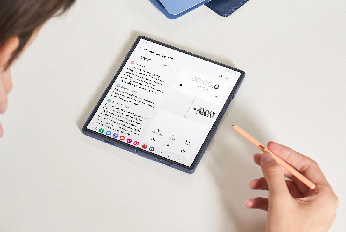 為了滿足商務精英的需求,三星Galaxy Z Fold6對多個AI應用進行了全面升級。其筆記助手功能強大,能夠迅速捕捉會議要點,并自動整理成內容摘要,讓會議記錄變得輕松快捷。而轉錄助手更是實現了會議錄音的實時文字轉化,且能智能區分不同發言人的聲音,進一步提升了會議記錄的效率與準確性。這些功能,無疑為商務人士提供了極大的便利,讓他們在工作中更加游刃有余。