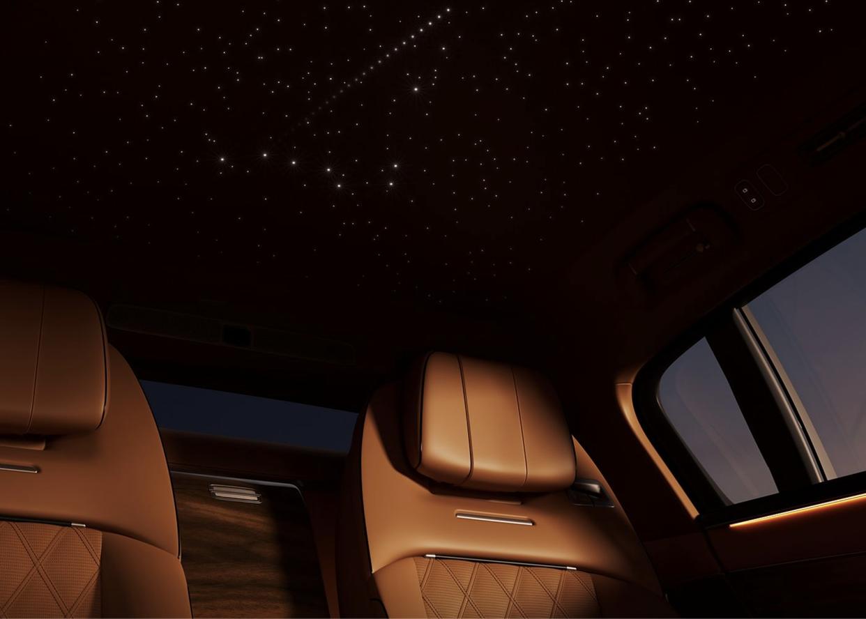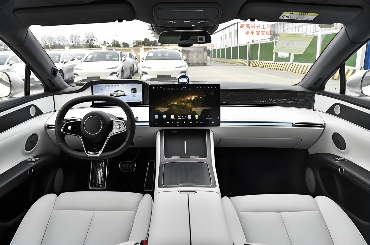 尊界S800的內飾采用了現代化對稱式設計美學,環抱式的座艙采用了大面積Nappa真皮材質鋪陳,還有比例較大的桃木樣式飾板,貫穿式空調出風口設計,還有大尺寸亮黑色鋼琴烤漆裝飾面板和銀色金屬裝飾,還加入無數顆射燈的星空車頂,猶如滿天繁星的銀河,提升了整車的精致感和輕奢感。中控臺配備了更加新穎的三輻式多功能方向盤,并采用了雙拼配色,展現出不錯的豪華感,還加入了懷擋設計,與操控島保留的大顆粒物理按鍵,提升了車內的機械質感。科技感方面,配備了懸浮式的懸浮式中控大屏,由彩色全液晶儀表、中控大屏和副駕駛顯示屏組成,前風擋玻璃上還有AR-HUD抬頭顯示,還配備了流媒體后視鏡,A住位置設置了通風開口以及駕駛員監測系統。