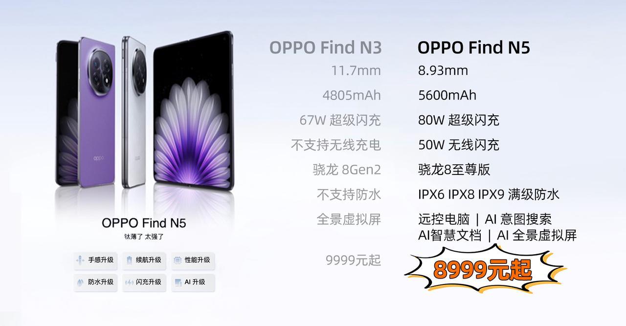 另外,Find N5還首發AI意圖搜索,只要輸入語義描述就能精準描述本地文檔的內容,還接入了DeepSeek-R1模型,無論用來找樂子還是輔助創作都很不錯,疊加系統雙buff妥妥的打工人福音。綜合配置來看,不難發現Find N5確實升級點滿滿,放在8999的起售價上可以說性價比拉滿了。
