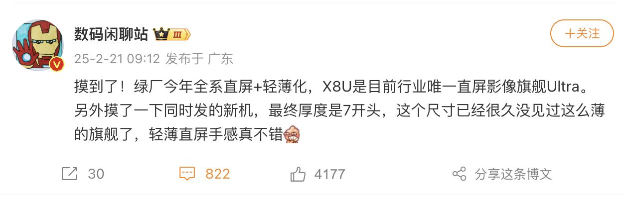 另外,根據數碼閑聊站的消息,Find X8 Ultra可能會是行業唯一直屏影像旗艦Ultra,厚度會是7字開頭,很值得期待。
