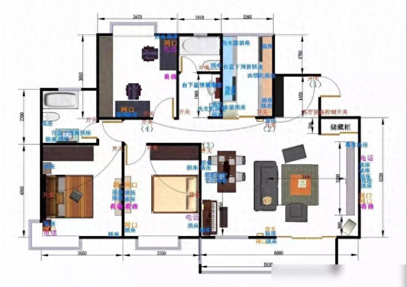 解決方案:插座數量要根據實際需求來確定,盡量在裝修前就選好家具,水電改造的時候就可以按照實際的家具尺寸和位置預留插座,避免裝修完發現插座不夠用。