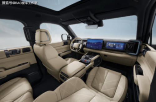 車內豹5乾崑智駕版為用戶打造了一個極致舒適的駕乘空間。“冰箱彩電大沙發” 與 “按摩香氛帝瓦雷(音響系統)” 的標配,讓每一次出行都成為一種享受。智能 5 聯屏配置,包括 12.3 英寸的高清儀表屏、15.6 英寸的 2.5K 中控大屏、50 英寸的 HUD 抬頭顯示、12.3 英寸的副駕娛樂屏以及流媒體內后視鏡,操作界面簡潔直觀,功能豐富強大。方程豹硬派專屬 AI 智能座艙,通過強大的 AI 智能語音交互(大模型加持),用戶可以輕松實現畫畫、作詩、導游、導購以及制定出行計劃等功能,還能借助 AI 智能影像識別技術,自動識別駕駛者身份與習慣,實時判斷街道路標和環境,讓駕駛變得更加智能、有趣。
