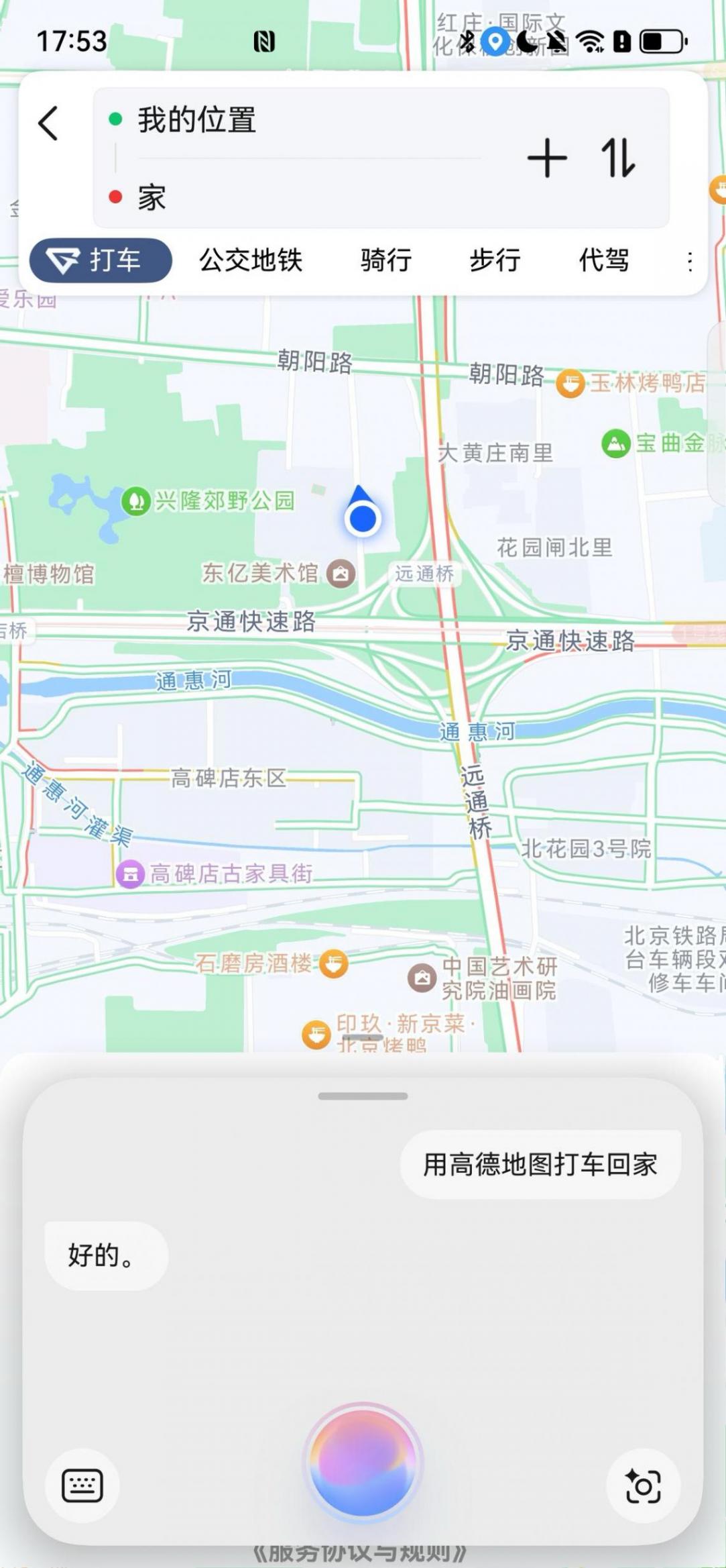 以前大家想要導航去目的地,需要先打開導航App,輸入目的地、選路線,然后點開始導航,這一系列操作還是很繁瑣的。而現在使用鴻蒙原生版高德地圖,只需跟小藝說一句“去公司”或“打車回家”,系統就能秒懂你的意圖,直接拉起高德地圖導航或打車頁面,操作步驟減少了70%。