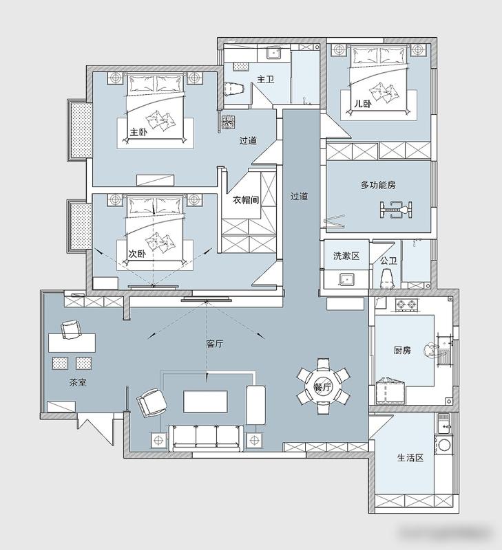 新中式風格的空間布局更注重實用性和功能性,遵循“家是最小的宇宙”這一原則,注重空間的合理利用和舒適性,在室內布局中,更加注重空間的流動性和功能性,使整個空間更加協調和舒適。
