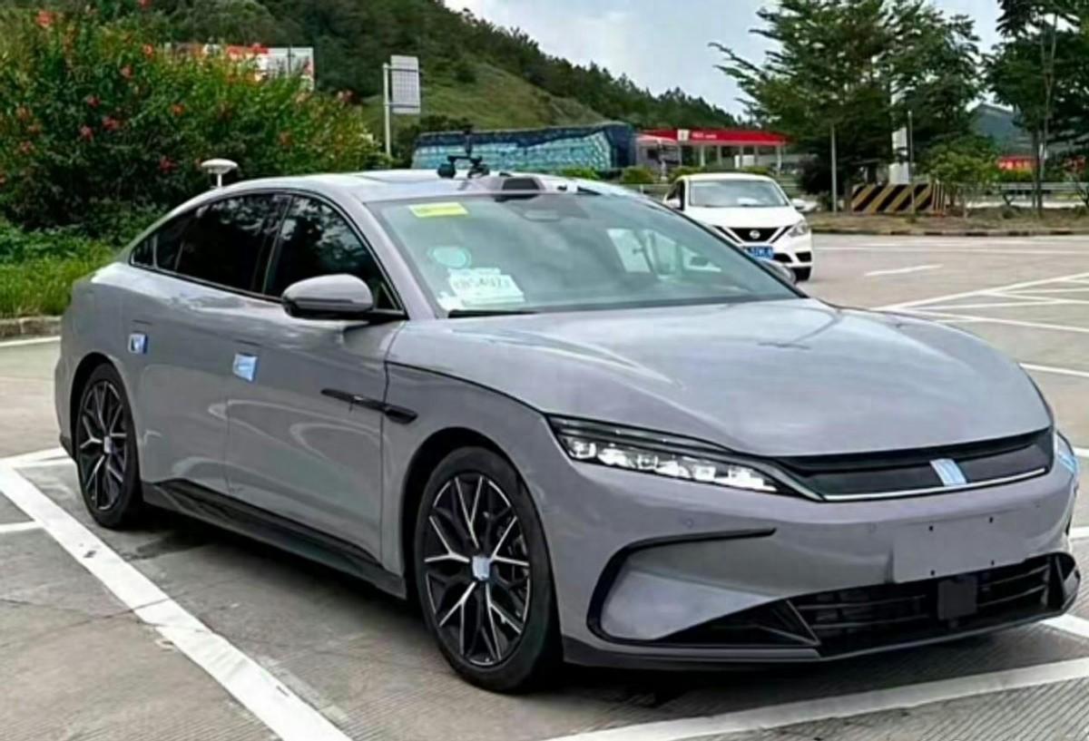外觀方面,新款比亞迪漢在整體造型輪廓上與現款車型相比并無明顯差異,但在細節之處進行了調整。其中,漢 DM-i 車型換裝了與純電車型相同的前臉,取消了大尺寸中網格柵。此外,高配車型的頂部增加了瞭望塔式激光雷達,新車還將提供黑化運動套件。