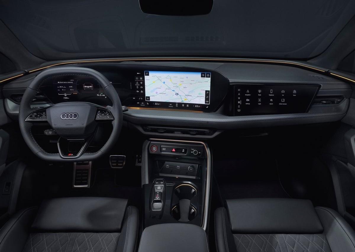 內飾應用了奧迪最新家族化座艙布局,與全新奧迪 A5接近,配備11.9英寸的液晶儀表屏和14.5英寸中控屏,副駕配備有一塊10.9英寸娛樂屏,支持 HUD 抬頭顯示系統選裝。換擋機構從電子擋把更換為電子滑塊樣式,車輛仍保留有駕駛模式切換、ESP 開關、音量調節等快捷功能鍵。海外版新車將使用 Android Automotive OS 操作系統。后排座椅支持前后移動及靠背角度調整,后備廂容積拓展至1473升。