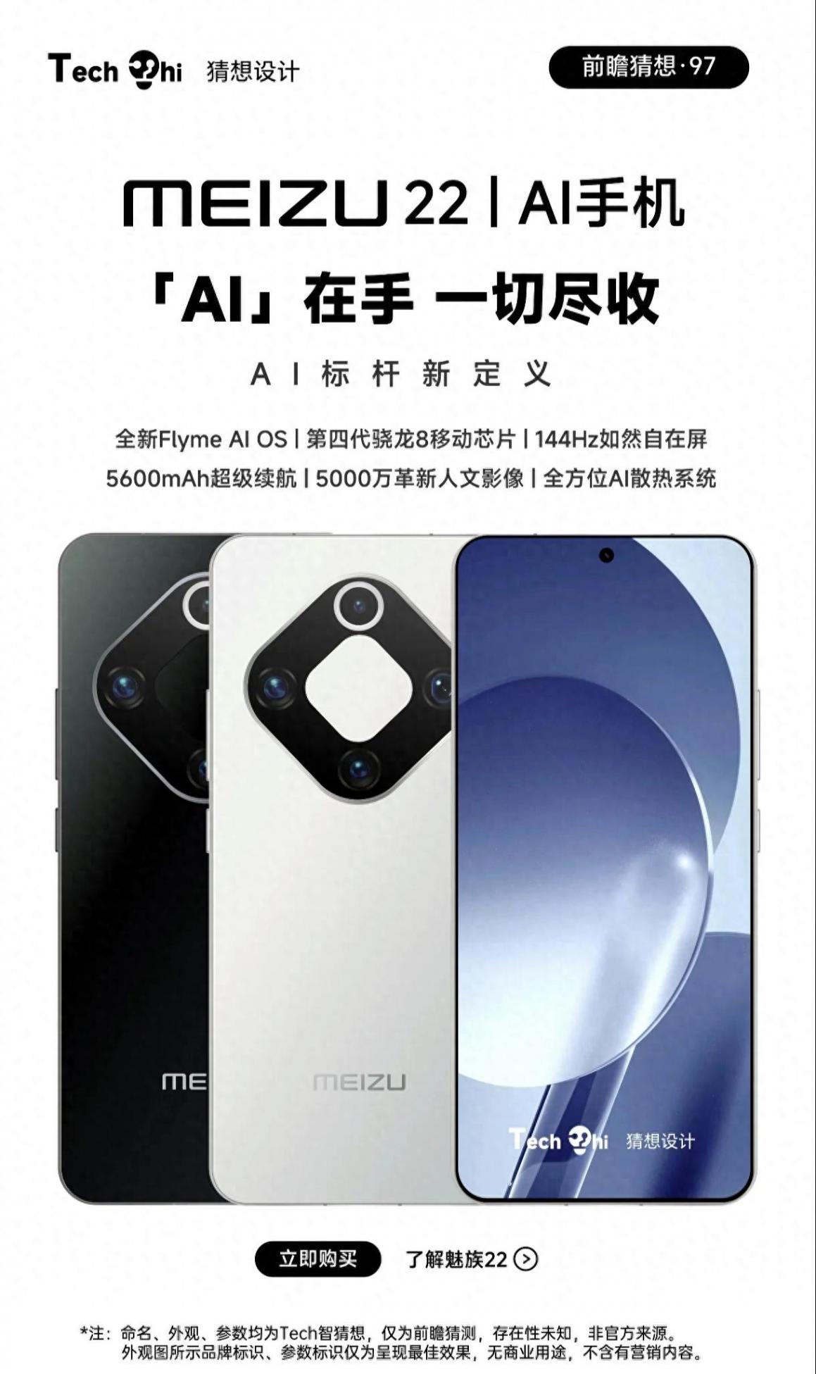 近日,Tech智的一組魅族22 AI手機(jī)猜想設(shè)計(jì)圖在網(wǎng)上引起熱議。雖非官方信息,但從中也能提前窺探到魅族22的諸多亮點(diǎn)。