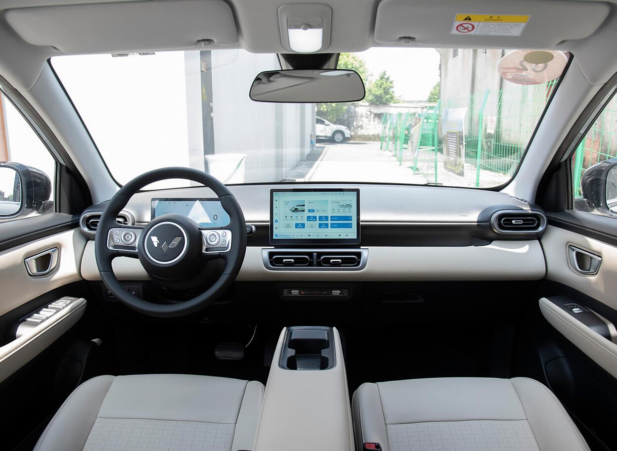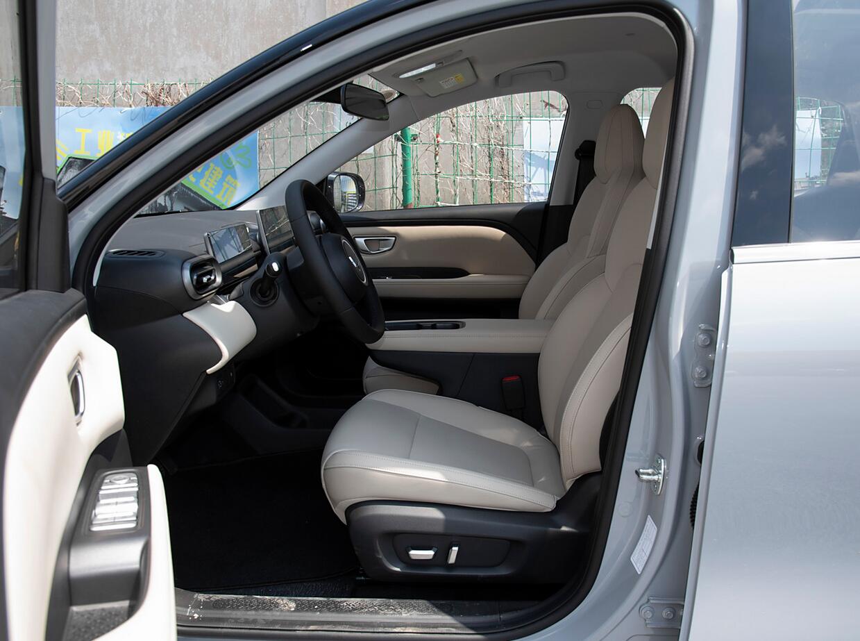 內部,提供暖沙白和空境綠兩種配色,中控臺有皮質包裹。配備有8.8英寸液晶儀表和10.1英寸中控屏,搭載了Ling OS靈犀智能系統,支持語音識別、車聯網、遠程控制等功能。此外,還提供皮質方向盤、電子懷擋、皮/翻毛材質混搭座椅、手動空調。