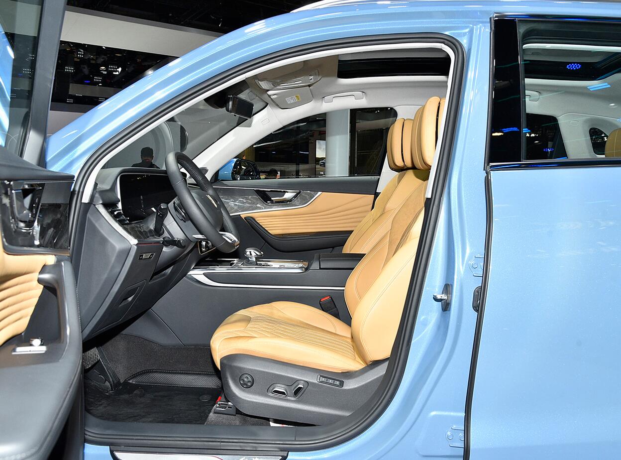 內部,內飾采用了高品質材料,如軟質皮革、木紋飾板等,觸感細膩且富有質感。搭載了12.3英寸中控屏和12.3英寸全液晶儀表盤,中控集成了豐富的智能科技功能,如導航、娛樂、車輛設置等,操作便捷且界面友好。同時,還有253色氛圍燈、抬頭顯示、輔助駕駛等功能可選。