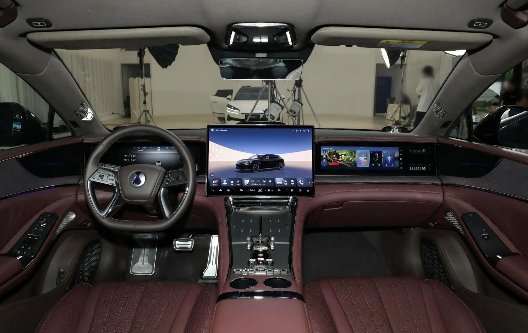 內(nèi)部,新車配有五塊屏幕,包括懸浮式中控屏、全液晶儀表、娛樂(lè)副屏以及兩側(cè)電子后視鏡。同時(shí)配有HUD抬頭顯示、帝瓦雷音響、雙50W手機(jī)無(wú)線快充、128色氛圍燈、冷暖冰箱、香氛、全景天幕等科技元素。