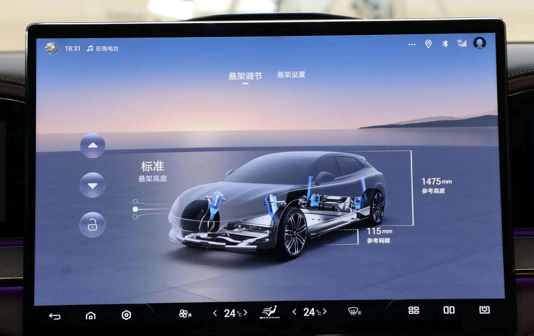 底盤(pán)方面,采用前雙叉臂+后多連桿的懸架結(jié)構(gòu),搭配云輦-A智能液壓控制系統(tǒng),可調(diào)節(jié)懸架高低與軟硬。
