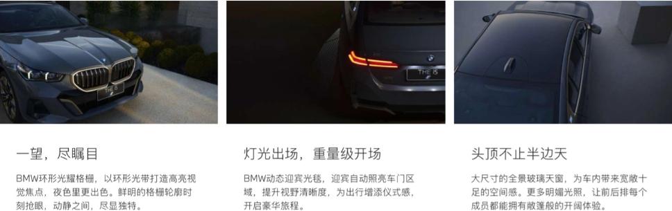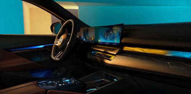 走進車內,能看到 i7 同款內飾,水晶質感氛圍燈十分搶眼,換擋機構和 iDrive 操作旋鈕也是晶瑩剔透的水晶樣式,搭配帶紋理的木飾板,科技豪華氛圍濃郁。標配一體式懸浮曲面屏,由 12.3 英寸全液晶儀表和 14.9 英寸中控屏幕組成,顯示清晰,操作流暢。車機換裝第 9 代 BMW 操作系統,支持 BMW 尊享數字服務。前排座椅電動調節,駕駛者座椅帶記憶功能,前排座椅還有加熱功能,采用 Veganza 皮革座椅,質感舒適。環抱式交互光帶營造溫馨氛圍,雙區自動空調可滿足不同區域溫度需求。