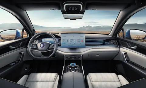 車內(nèi)采用大面積的搪塑軟質(zhì)材料包裹,再輔上皮革縫線工藝,手感出眾的同時細節(jié)處理也很到位。中控區(qū)域配備12.3英寸全液晶儀表、15.6英寸自適應旋轉懸浮中控屏,搭載最新一代DiLink智能系統(tǒng),可支持OTA在線升級,提供車內(nèi)的科技感,配合平底式的多功能方向盤與“蘑菇頭”樣式的電子擋桿,整個駕駛氛圍的運動氣息濃厚。