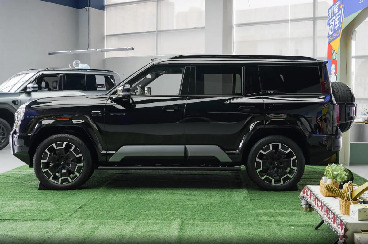 方程豹豹8的車側有著方正的體態,邊角的線條結構保持了平直風格,A柱、B柱和尾柱區域采用黑色涂裝,讓車頂帶有了懸浮式效果,同時縱向的行李支架也能在外出時提供擴展的裝載空間。腰身區域著重在輪拱上方進行了外凸化的處理,加上車門平直的線條以及裙邊單獨的飾件組合,讓車側的硬朗氣質進一步提升。車門下方還配有電動收縮踏板,讓上下車更為便捷。