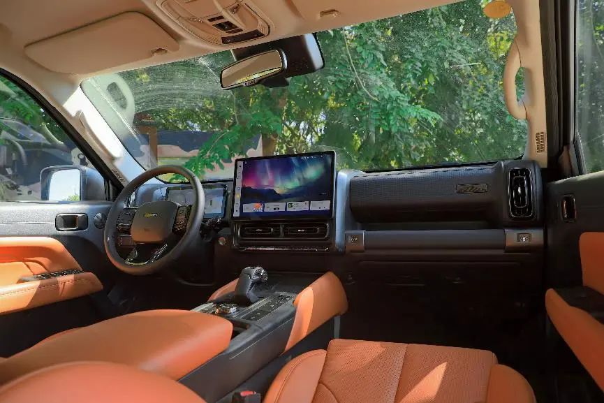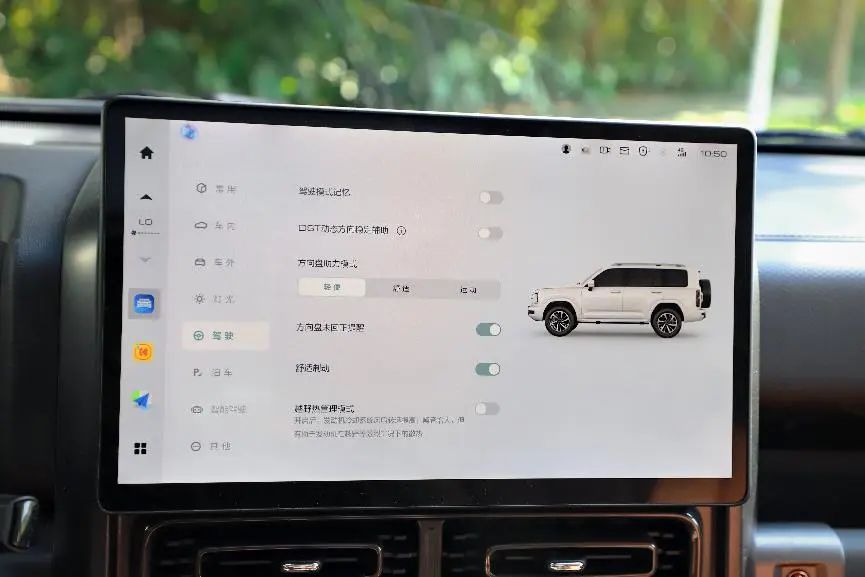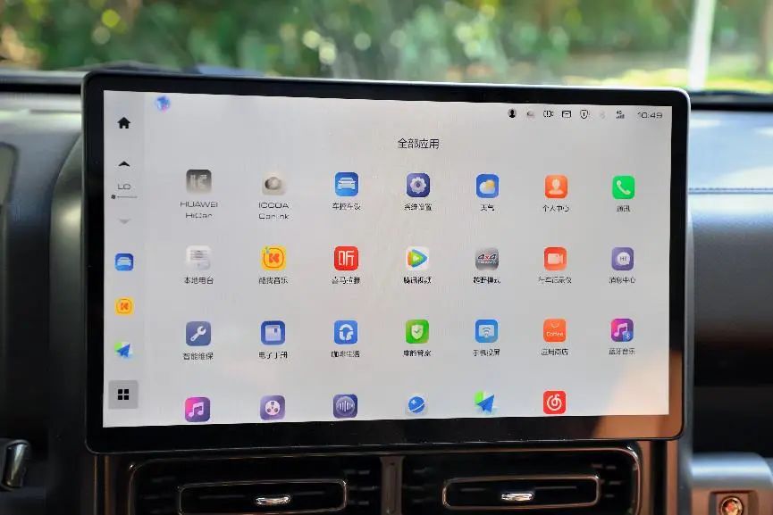 14.6英寸的中控屏,內(nèi)置了大量車輛信息和功能的調(diào)節(jié),在越野時打開越野模式也能夠顯示越野參數(shù)、車身姿態(tài)、海拔、氣壓、方向、胎壓、輪胎溫度等,支持HiCar的手機(jī)互聯(lián)及大量第三方app,整體的智能化體驗(yàn)也屬于主流水平。