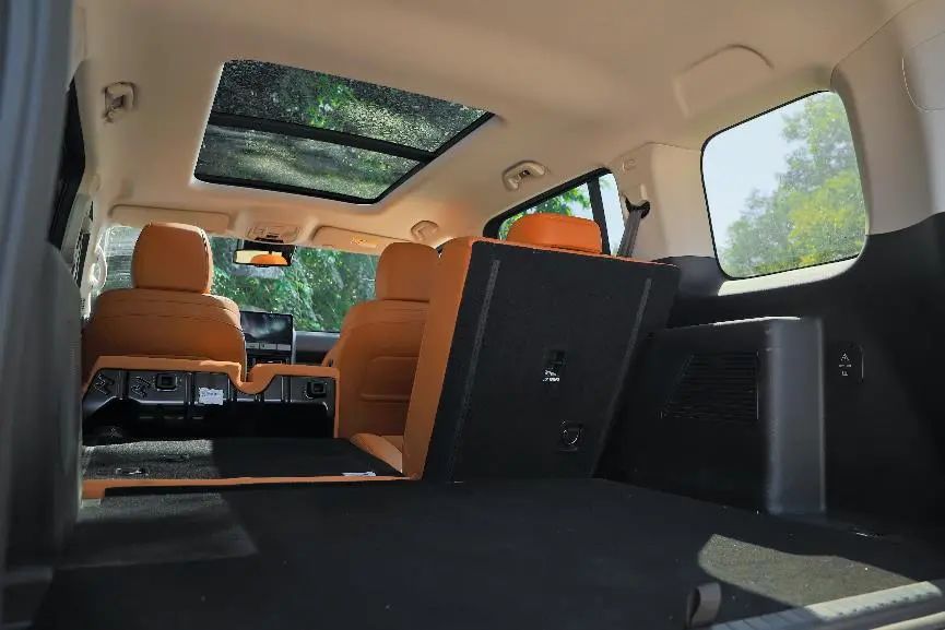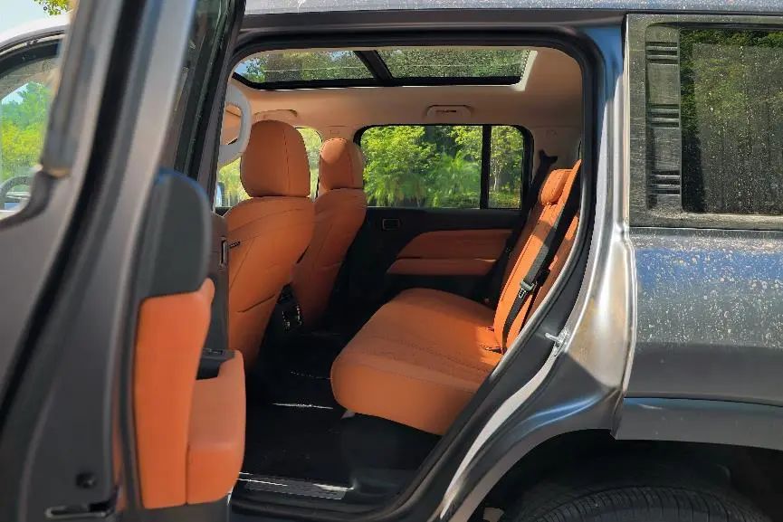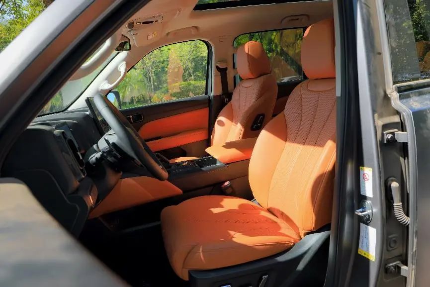 除了硬核的地方,在舒享配置和實(shí)用性上也表現(xiàn)優(yōu)異。首先,車內(nèi)座椅都比較寬大,填充物足夠柔軟舒適,前排座椅提供9擋加熱可在34℃—42℃進(jìn)行調(diào)節(jié),座椅通風(fēng)也支持多檔可調(diào),高配車型還提供8點(diǎn)式座椅按摩、老板鍵及后排座椅通風(fēng)加熱。