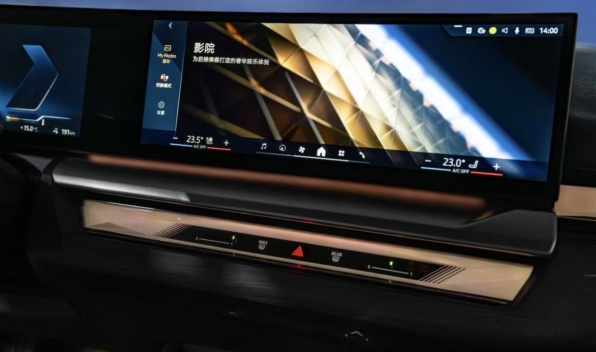 生態應用顯得豐富,可以看電影和聽在線音樂,尤其是后排配備了31英寸的8K顯示屏幕,屬于橫置布局,如果是跑長途后排乘客也不會覺得無聊,并且和前排屏幕進行聯動,科技感挺豐富的。