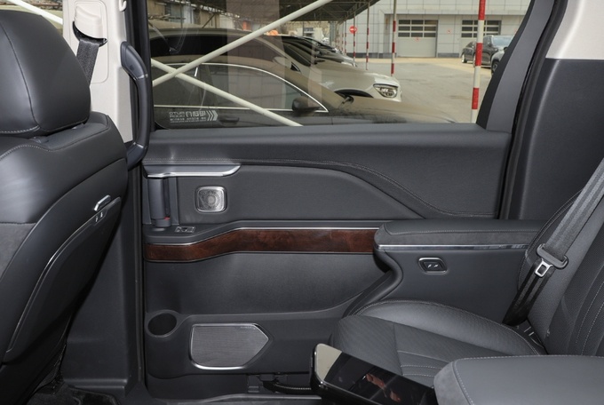 另外,紅旗HQ9 PHEV的中控臺、門板、座椅等處大面積采用頂級Nappa皮包覆,帶來細膩、親膚的觸感,并且在中控臺、中央扶手處加入了真的胡桃木飾板,營造高品位的社交氛圍。