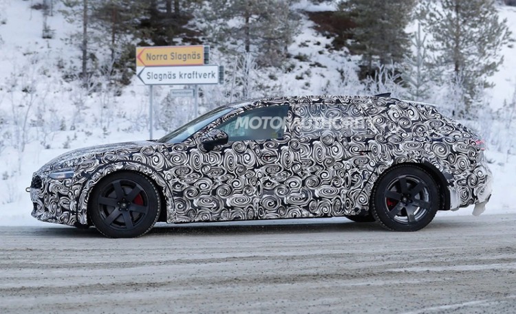 車身側面配備了突出車身的輪拱,這也是奧迪allroad車型標志性的設計,細節上應該會采用磨砂塑料材質,不過諜照帶有厚重偽裝,目前還無法確定。