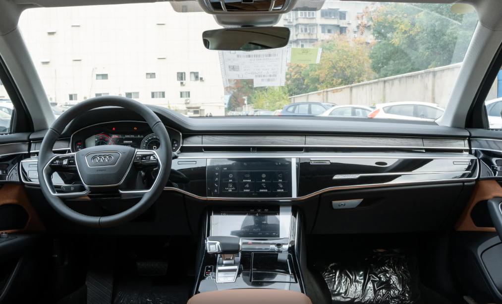 打開車門來到車內,25款奧迪A8L的內飾設計還是很有豪華質感的,其車內采用了大面積的皮質材料包裹,而且中控臺也是采用了分層的設計,在視覺效果上有一種層次感在其中,同時在顯示屏幕方面,25款奧迪A8L也是采用了10.1英寸的中控屏幕和8.6英寸的中控下屏,在科技質感上倒是也有著不俗的表現。且這兩塊顯示屏幕的顯示效果較為清晰,且操作起來的時候也比較便捷。此外,在功能配置上,25款奧迪A8L還配備了無線網絡WLAN功能,可以直接連接外部熱點,讓我們在車內可以直接上網,在日常通勤的趣味性上,25款奧迪A8L同樣有所保障,有些可惜的便是該車在車內并沒有配備太多的實體按鍵,盲操作還是有一定難度的。