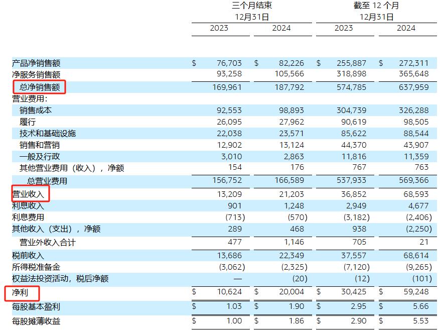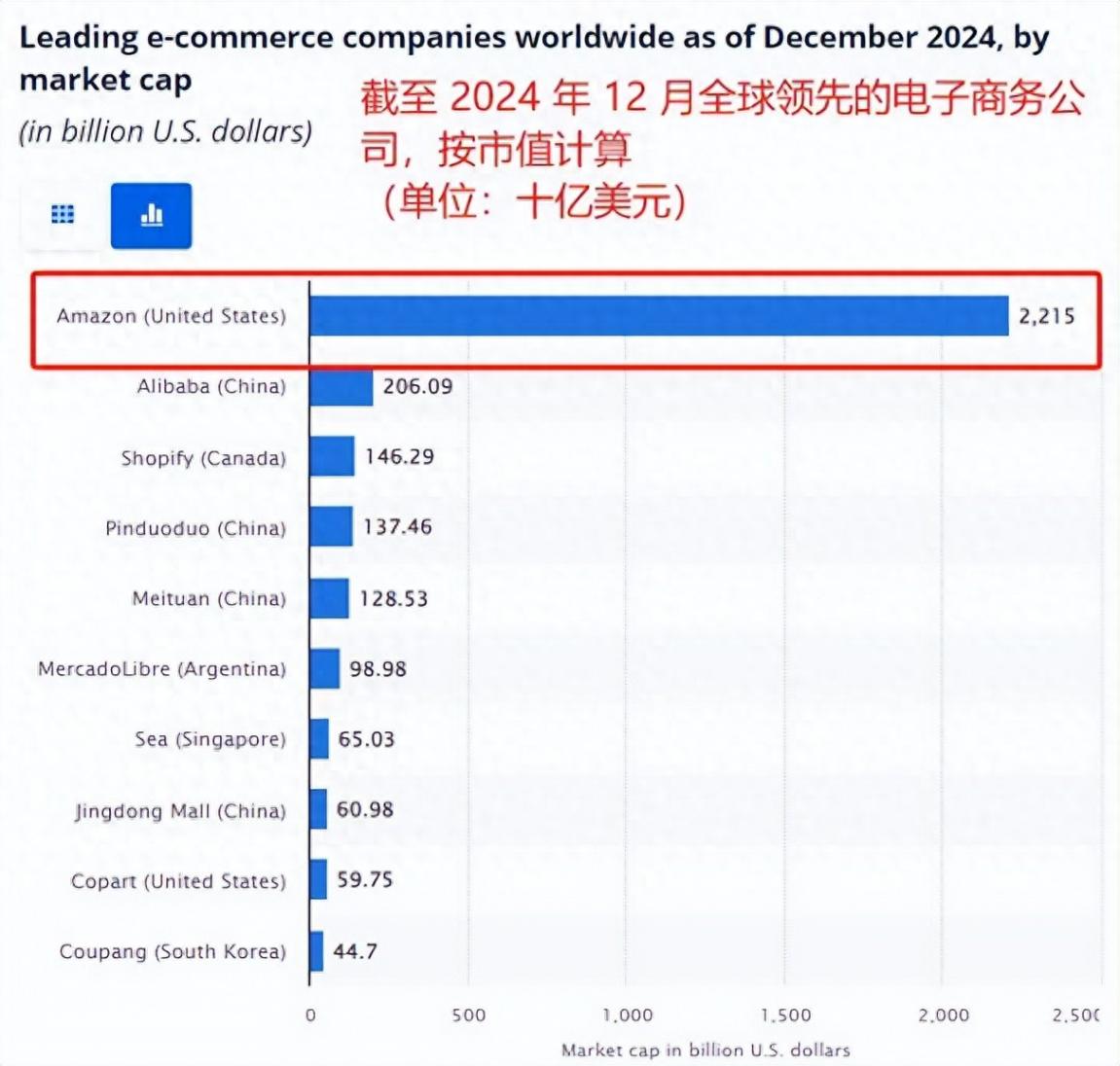 在全球電商企業(yè)中,亞馬遜的霸主地位難以撼動。2024年,亞馬遜的電子商務(wù)活動收入達8020億美元,全年營收6380億美元,凈利潤592億美元,市值超過2萬億美元。不僅如此,其活躍賣家數(shù)量眾多,業(yè)務(wù)覆蓋全球20多個國際站點,同時覆蓋B2C和B2B業(yè)務(wù)模式,服務(wù)包括逾2億付費Prime會員在內(nèi)的數(shù)億顧客所帶來的全品類、全價格階段的購買需求。