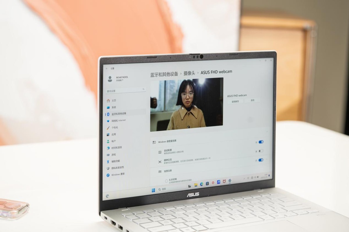 同時,該機的攝像頭支持華碩AI Camera,也就是具備一系列的AI功能,包括背景虛化,人像居中,能夠增強用戶網絡視聽效果。
